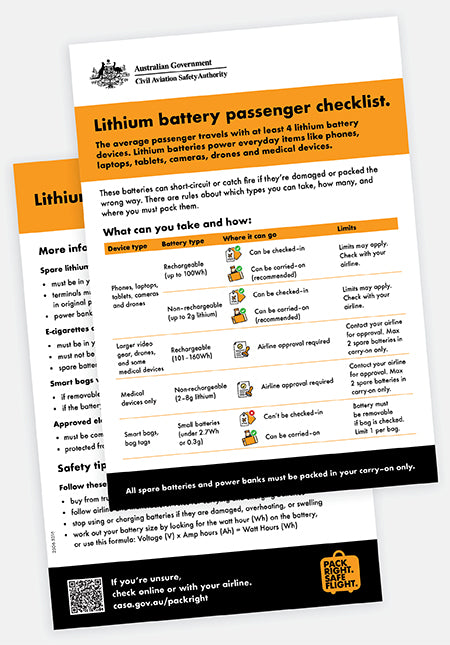 The  Lithium battery passenger checklist card can also be downloaded for free.