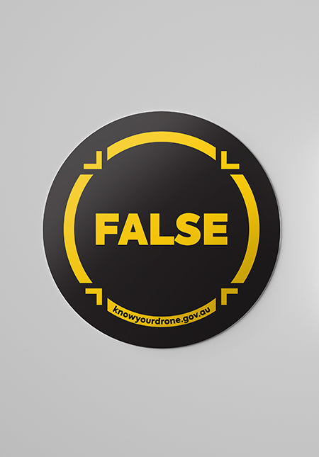This round promotional sticker is designed to support Australia's recreational drone safety campaign. It's a simple, eye-catching way for drone retailers, educators and community groups to encourage flyers to test their know and learn the drone safety rules.
