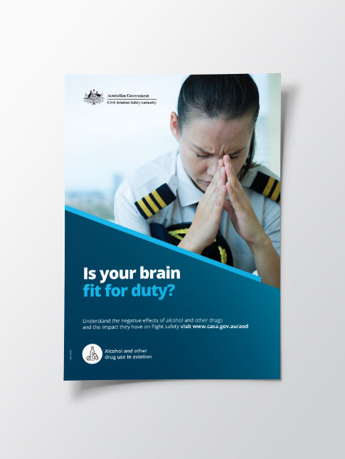 Alcohol and other drugs in aviation poster – Is your brain fit for duty?