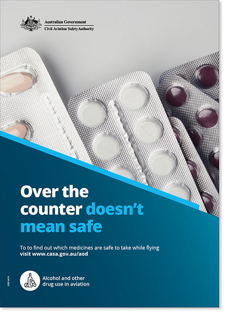This A3 poster prompts pilots to consider which medicines are safe to take while flying.