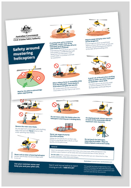 Safety around mustering helicopters information card